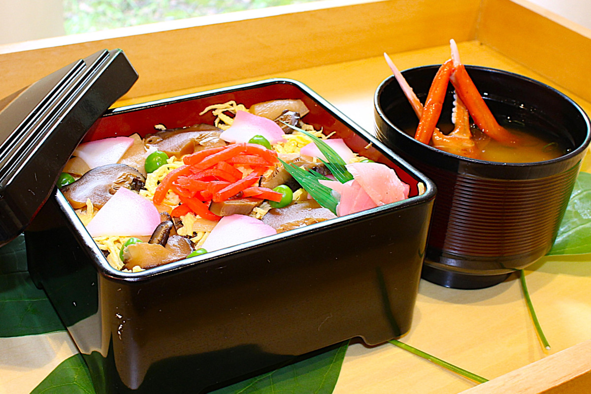 当日は、当ホテル自慢の 「丹後ばら寿司・蟹汁セット」 をご提供いたします。